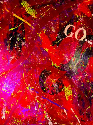 In diesem Objekt möchte ich eine explosive, abstrakte Komposition zeigen, die aus einem intensiven Farbspiel besteht.