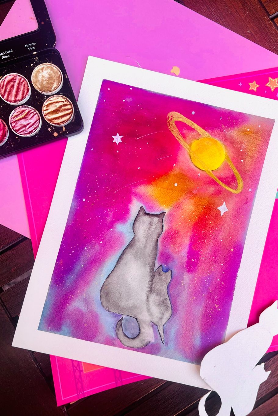 mit Watercolor Vögelchen, Kätzchen und kleinen Monstern.